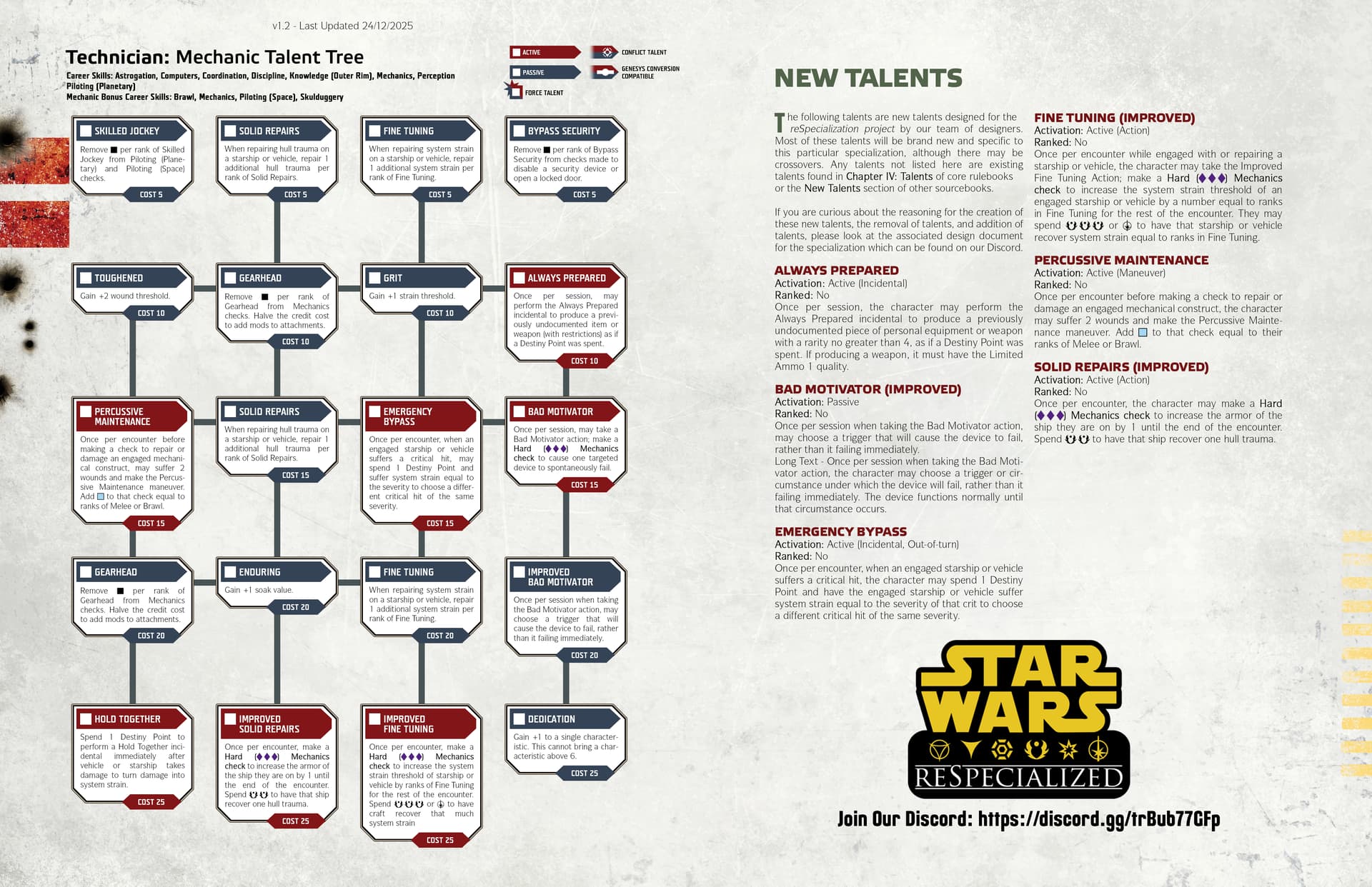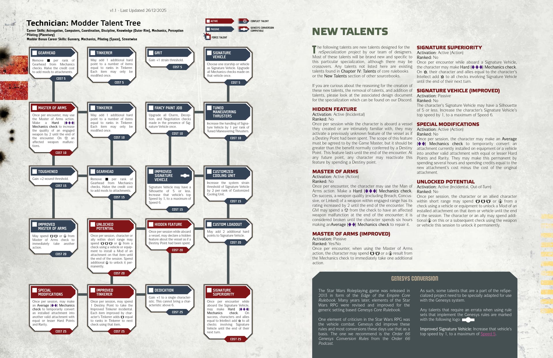 - Removed a rank of Toughened to make room for the Improved Bad Motivator from the Sapper specialization